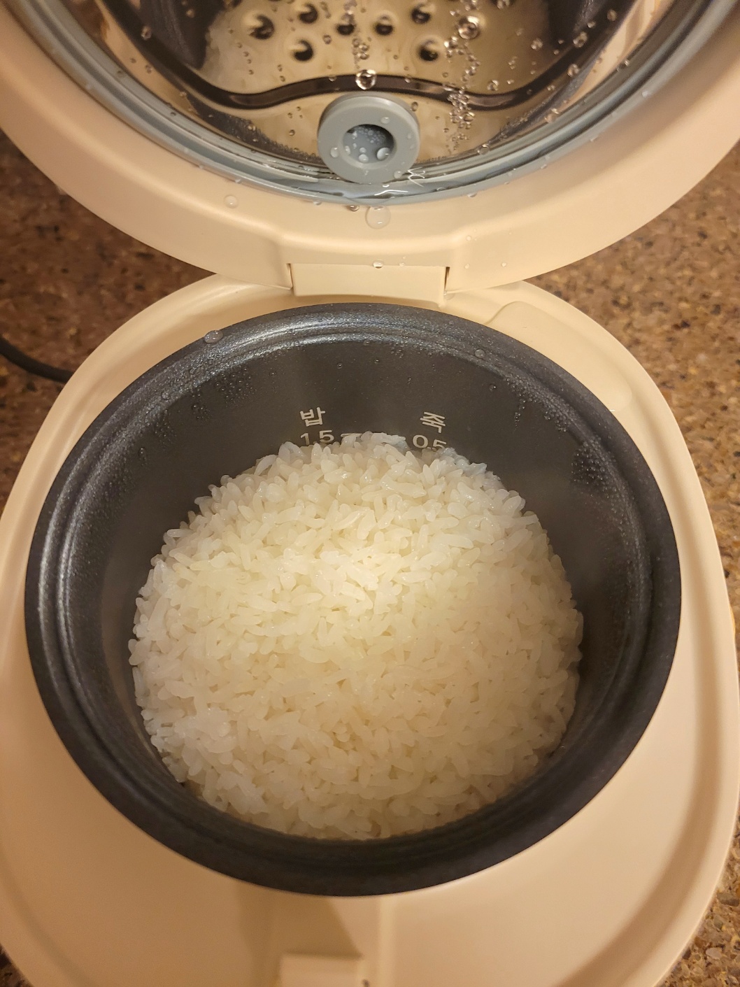 그 뒤로 불린 쌀로 완두콩밥도 해보고 죽도 해봤는데 쌀에 맞게 물조절만 잘하면 밥 맛이 압력밥솥 못지않다.