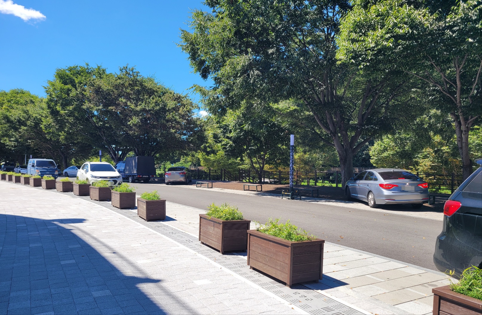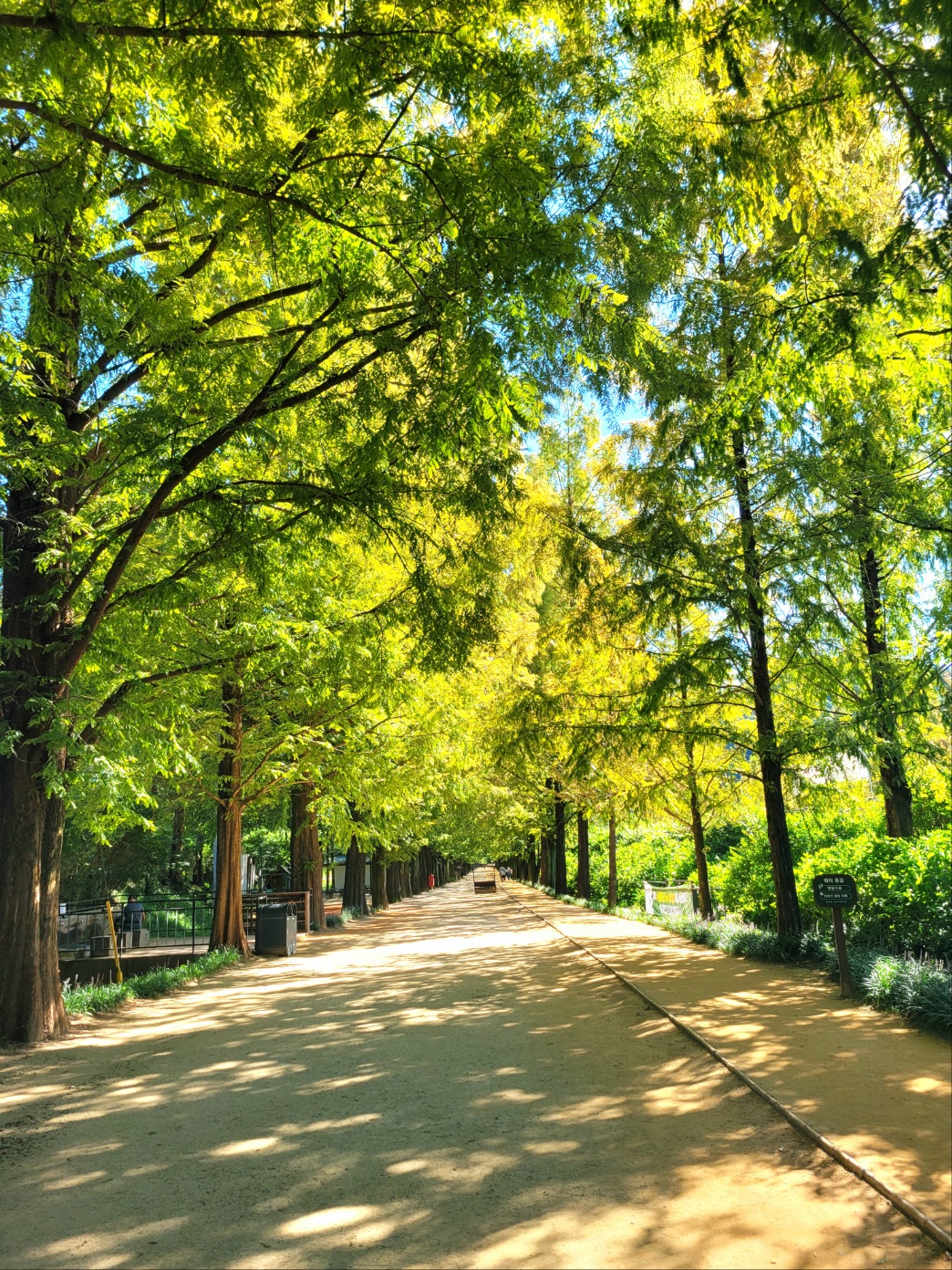 끝이 보이지 않을 정도로 길게 늘어선 메타세콰이어 나무들 사이를 걷기만해도 마음이 편안하게 힐링이 된다. 오래전엔 볼 수 없었던 쉼터 정자들이 생겨서 중간중간 쉬어갈 수도 있다.
