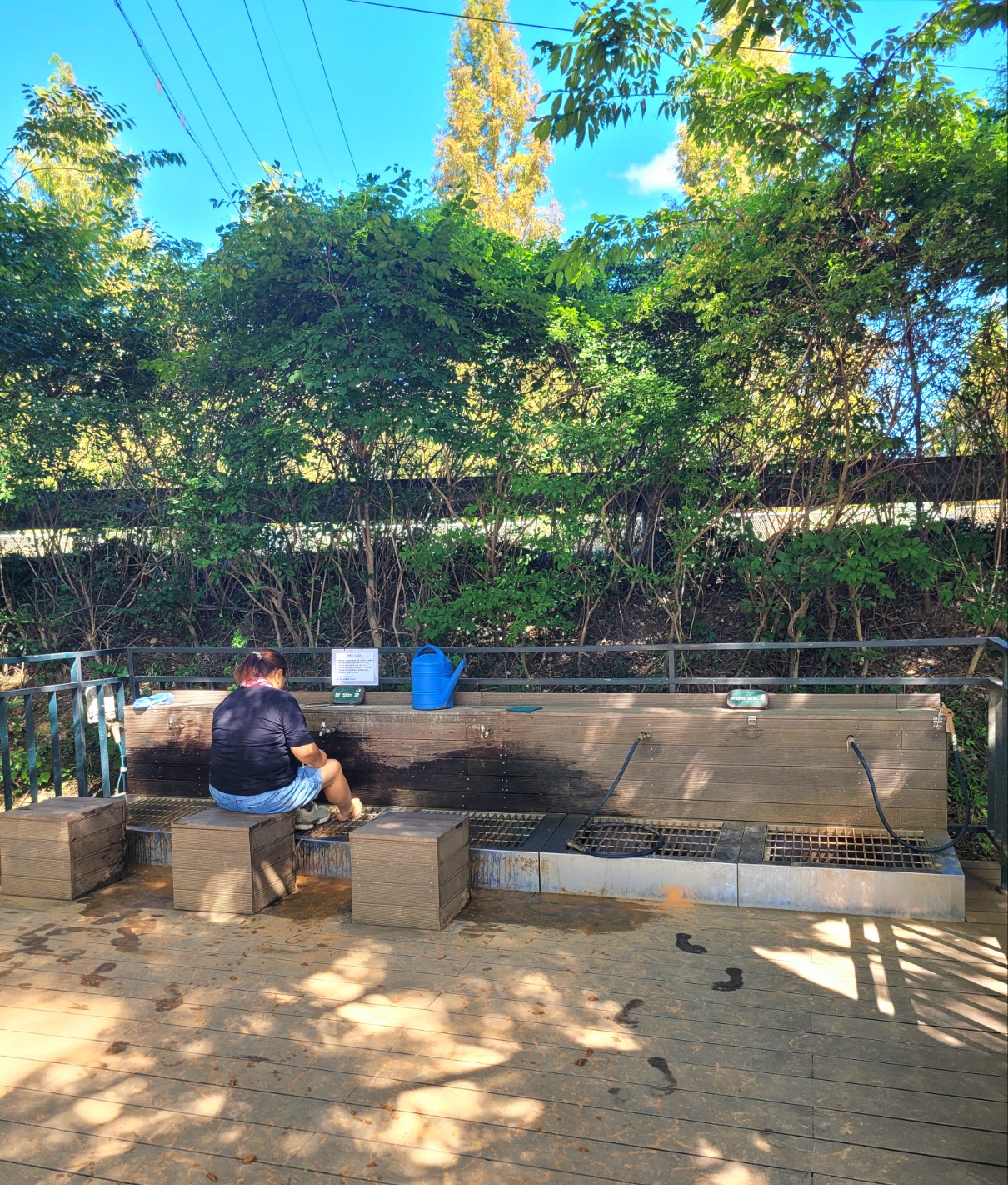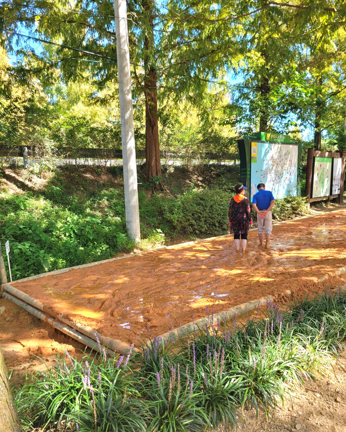 메타세콰이어 가로수길 한쪽에는 맨발로 걸을 수 있는 땅이 구분되어 있으니 신발을 벗은채 산책도 가능하고 일부 작은 공간이지만 황토로 채워진 흙길도 밟아볼 수 있다. 발을 씻을 수 있는 곳도 갖추어져있어서 맨발 산책을 부추긴다.