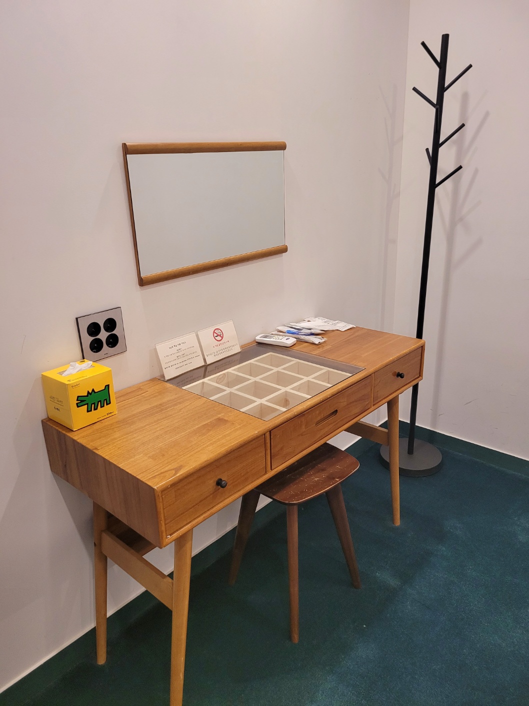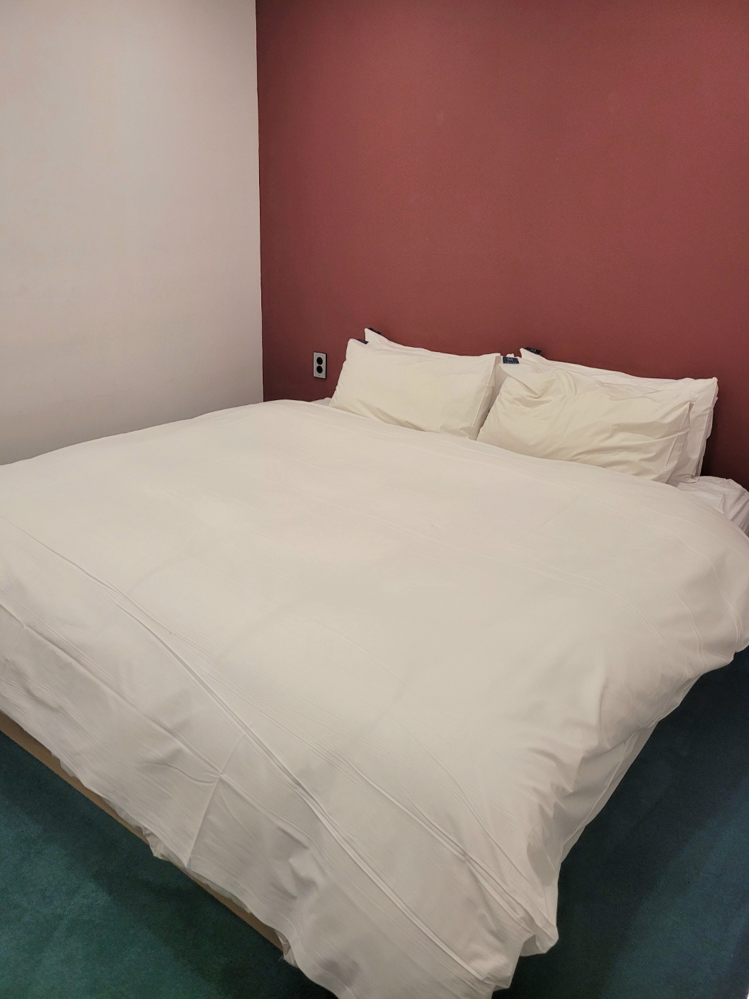 먼지를 늘 머금고 있을 것만 같아서 바닥이 카페트인 숙소를 선호하지 않지만 청소기가 꼼꼼하게 지나간 자국들이 보여 안심이 되었고 침구류의 상태도 괜찮았다.